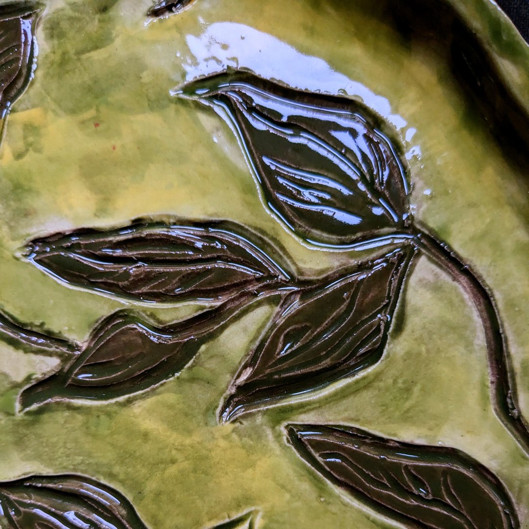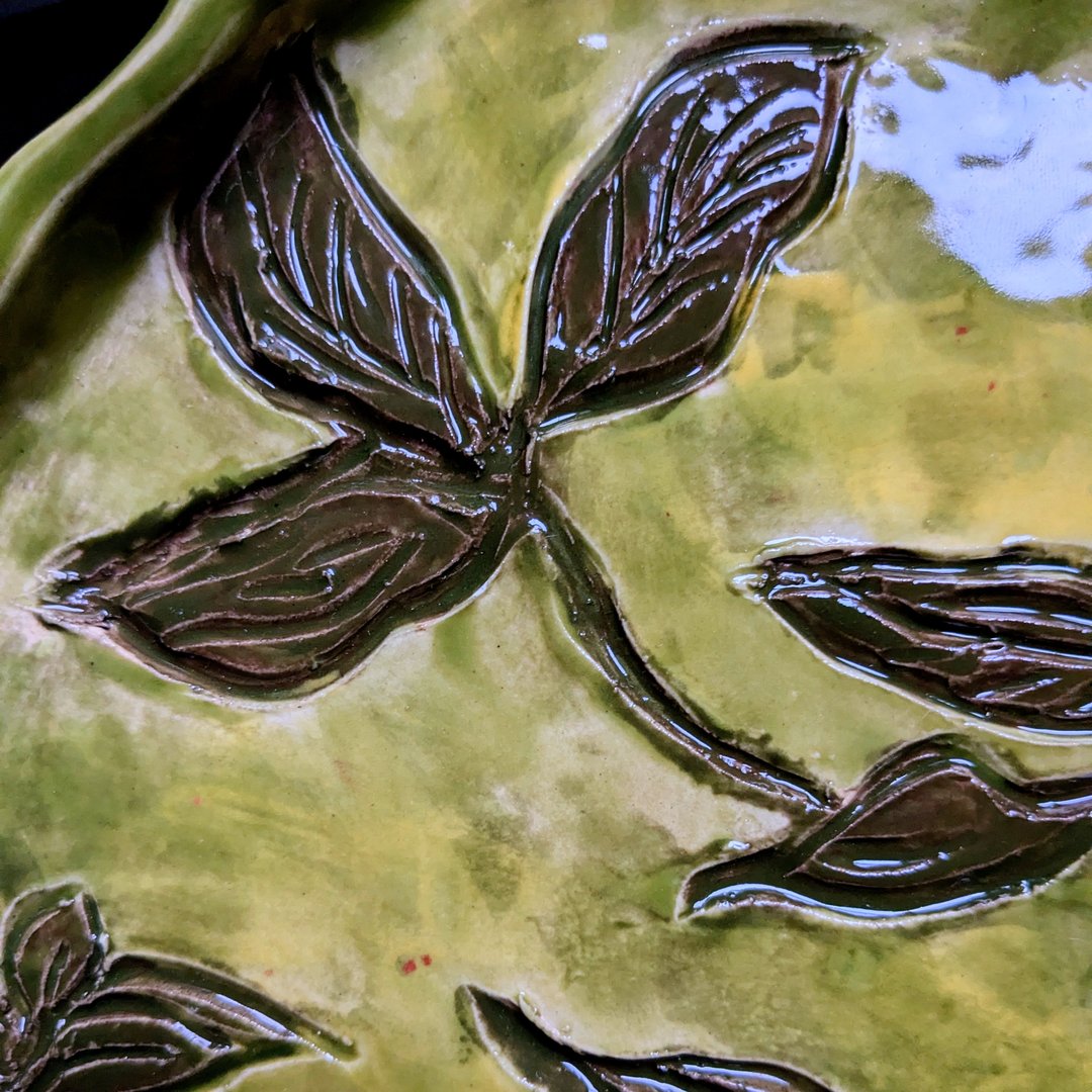 Assiette gravée, façonnée et peinturée à la main (Pièce unique)