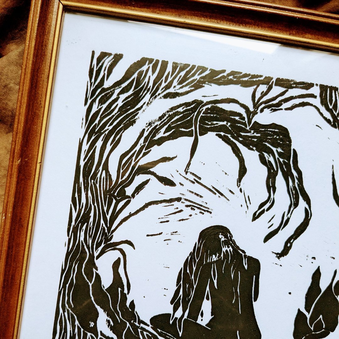 1 single print with vintage wooden frame (artwork is already framed) *Note that the frame is used